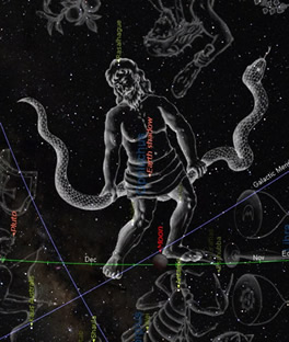 The transit in June 2012 was immediately preceded by a Lunar Eclipse, showing between the feet of the Serpent Bearer, the constellation of Ophiucus