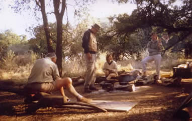 Magqubu’s eyes sparkled in the firelight. In a mixture of Zulu and English, he and Ian began recounting alarming tales of previous encounters with rhinos, on trails such a this one. Such was Magqubu’s knowledge of and rapport with animals that he could imitate perfectly their sounds and movements. He literally became a rhino, tossing his head, pawing the ground, snorting and laughing in accompaniment. Here at work was the archetypal function of story-telling. As the imagination is invoked and feelings intensified, personal experience becomes universalized as both story-teller and audience are opened to the numinous content within a situation. Almost as an aside, we were quietly told that if the rhino should actually charge, we were to run up a tree and stay there! An intoxicating blend of real and imaginary danger.