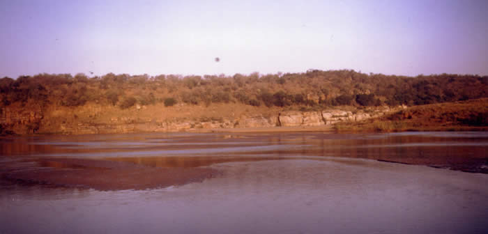 We travelled through tangles of brittle beige grass and across dry riverbeds; a soft mauve haze shrouded the far hills and belied the sandy dryness underfoot. Here and there, lush new emerald grass shoots had burst through charred and blackened tufts created by a huge bushfire. Towards mid-afternoon, we circled back via the Umfolozi river. Recent animal traffic was etched in a profusion of spoor criss-crossing the sand; Ian and Magqubu could read them like words. An enormous crocodile sunned itself on a distant rock, surveying his river kingdom. Further up-stream from its habitat, we bathed in the cold shallow water. This was surely the Garden of Eden.