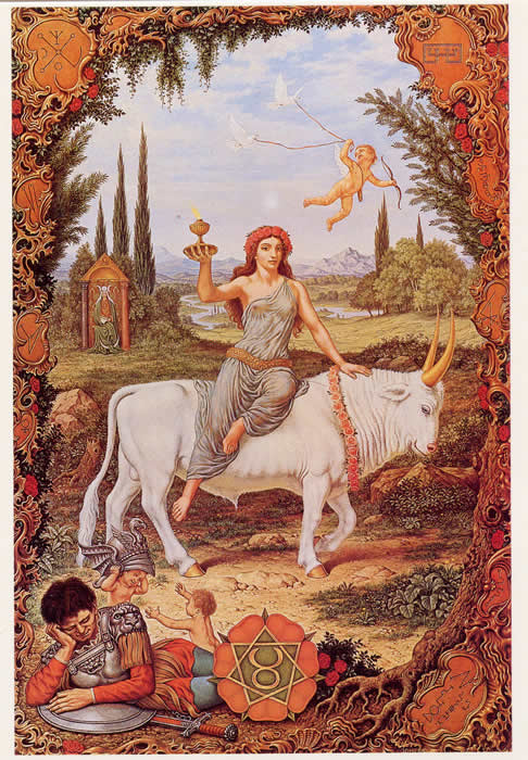 With gentle bull and maiden fair
